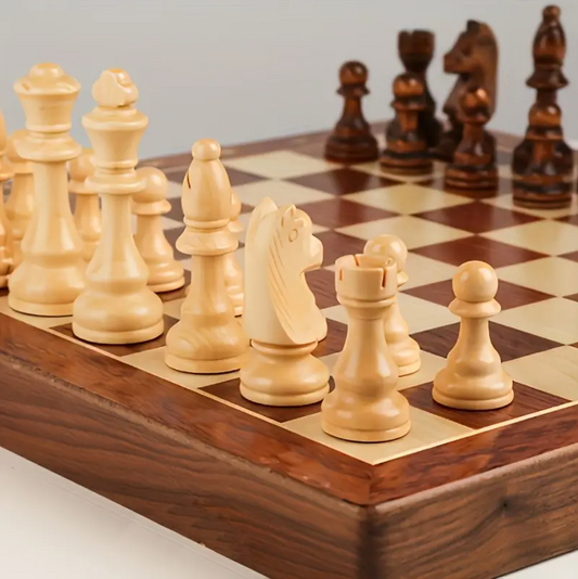 Deluxe Wooden Chess Set with Seahorse Beer Bottle Opener